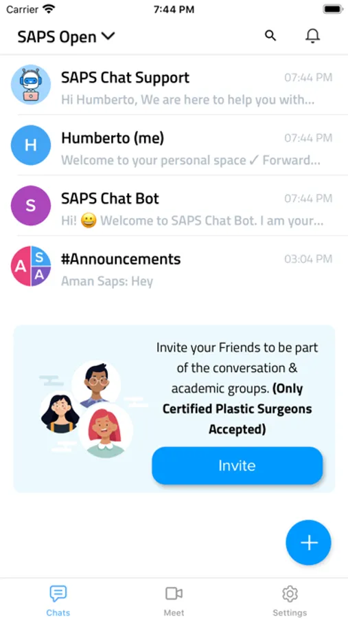 You can join all the public SAPS Chat groups by downloading this app and join the conversations. Also our users will be able to join private groups from different topics, surgeons, countries and many more.
