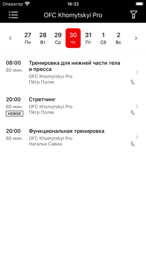 5. Проверять статус своего абонемента, следить за историей тренировок и видеть информацию о тренерах