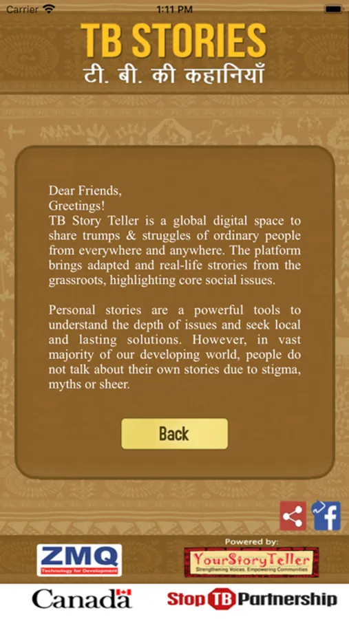 This project is developed by ZMQ Development using its YourStoryTeller platform. The projects is part of ZMQ's under Wave7 project call under TBREACH and is supported by StopTB Partnership and Government of Canada.