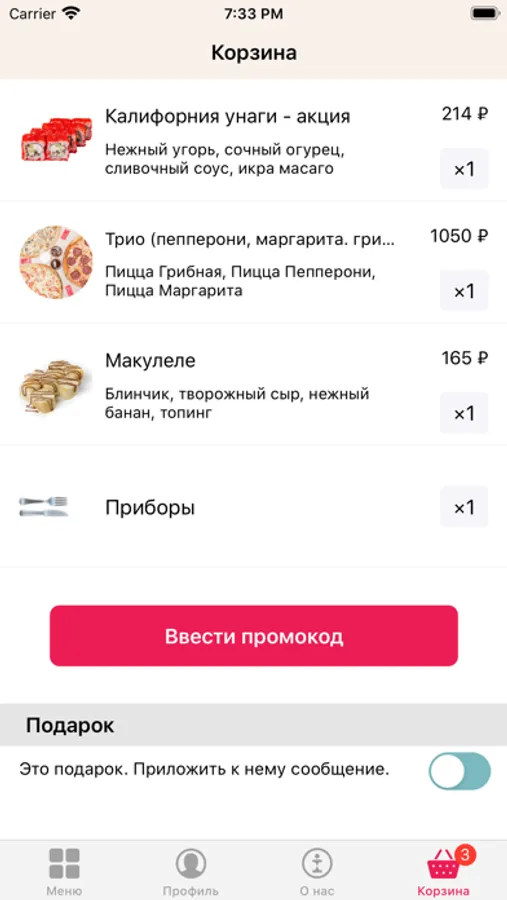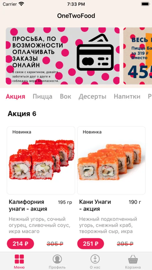Большой выбор пиццы, суши, роллов, салатов, закусок и напитков, приятные цены и отличное качество!