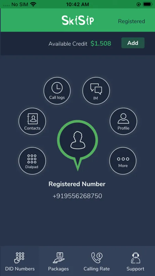 Skisip is a mobile dialer or application which makes VoIP calls on Apple iPhone and it uses the 4G/3G/Edge/wifi Internet connectivity.