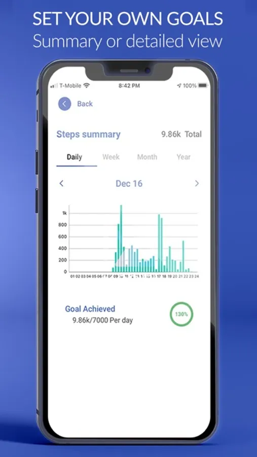 •DATA - View all your steps, calories, distance, floors done daily weekly