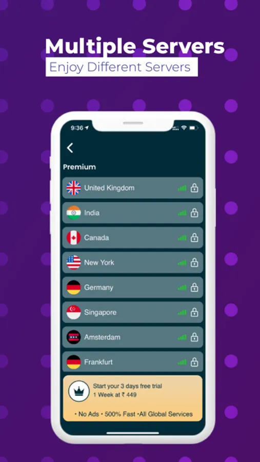 • Length of subscription: 1 week, 1 month, 1 year, access to Premium servers, and higher connection speed, and priority support, no ads