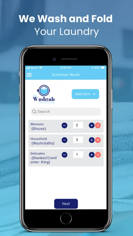 • Schedule a laundry pickup and delivery with our mobile application.