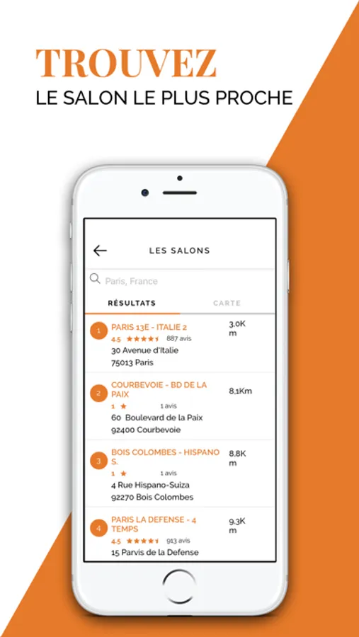 - Découvrir le salon le plus proche de chez vous, consulter ses disponibilités à tout moment et réserver instantanément votre prochain rendez-vous dans l’un de nos salons