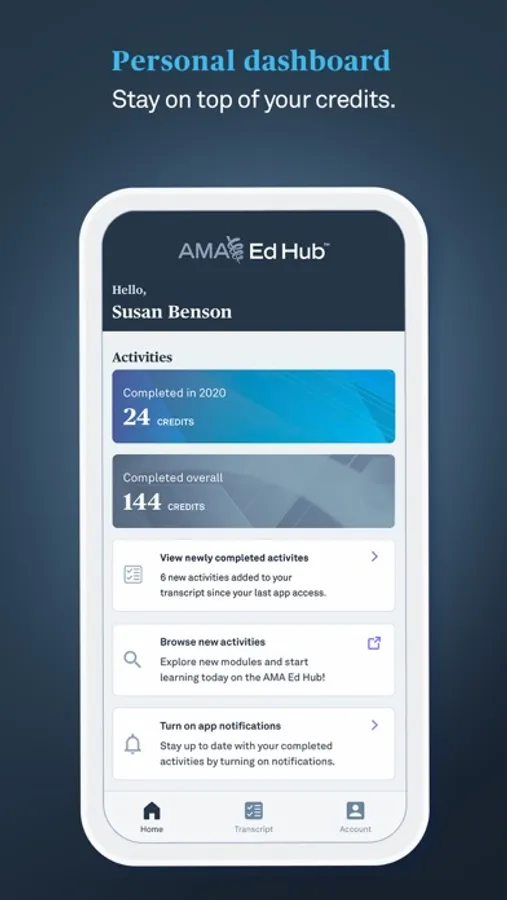 AMA Ed Hub Transcript will send you alerts whenever you complete educational activities and when CME credits are automatically submitted to participating boards. With its CME and credit tracking dashboard you can finally step away from the old-fashioned and time-consuming paper-based transcript tracking. You can now focus on what you care the most, taking care of your patients.