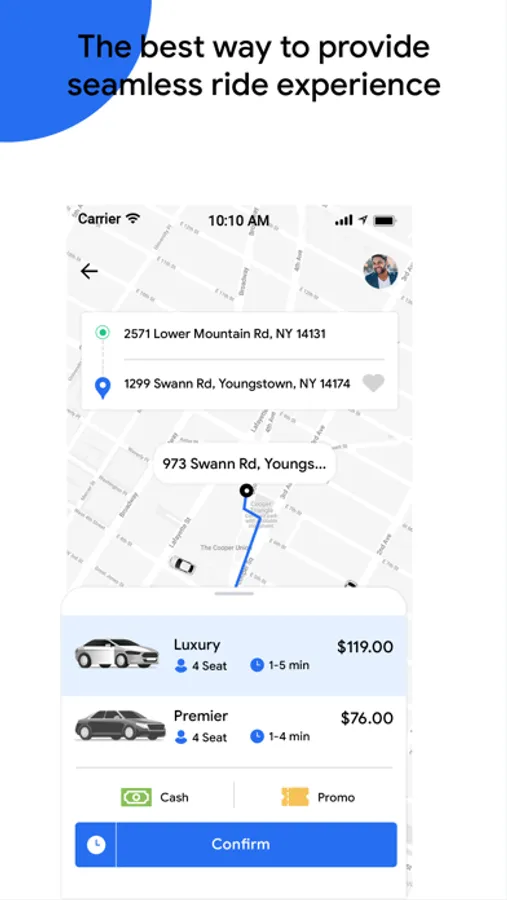 Pay for rides using various payment options such as cash, debit, and credit card.