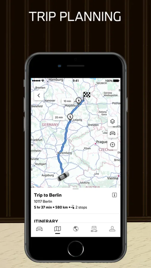 Find and send destinations, gas stations, charging stations, and parking areas directly to the navigation system