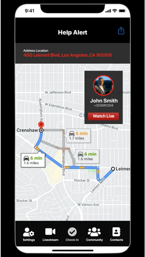 Check In: Assures contacts the user is safe with an updated pinned location. Free alerts are available via text messages to include a user’s pinned location.