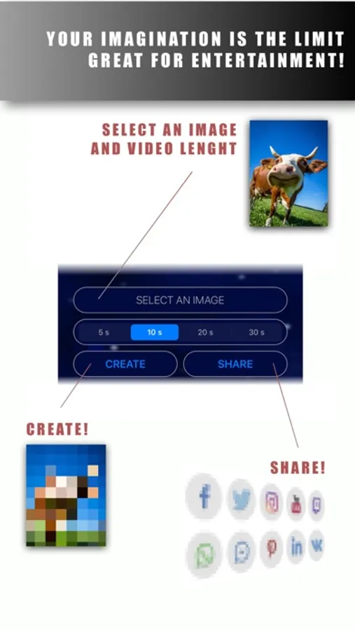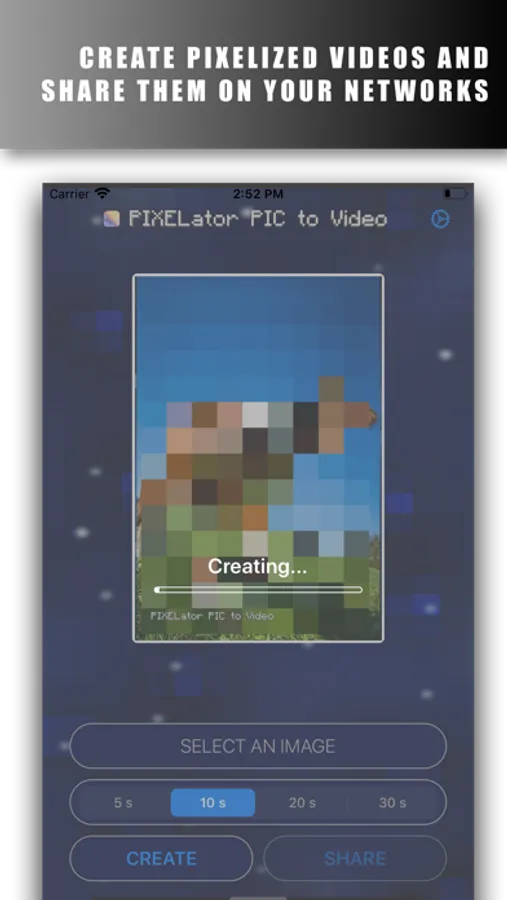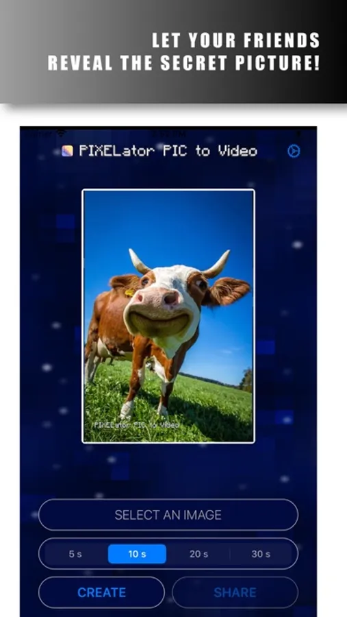 PIXELator creates a pixelated video from your images to challenge your friends, followers, family just for fun. Choose that epic picture from your camera roll or copy to the clipboard, set the output duration and you are ready to go.