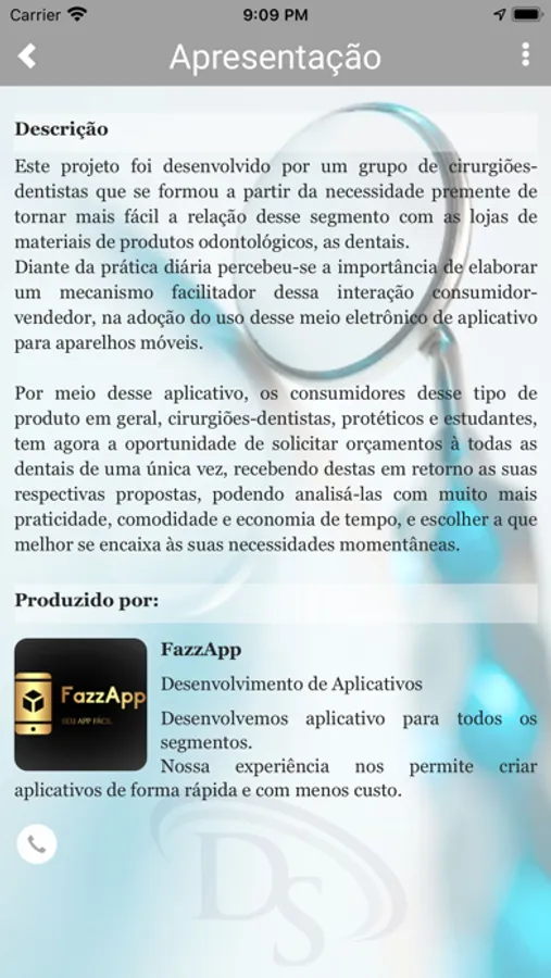 Este projeto foi desenvolvido por um grupo de cirurgiões-dentistas que se formou a partir da necessidade premente de tornar mais fácil a relação desse segmento com as lojas de materiais de produtos odontológicos, as dentais.