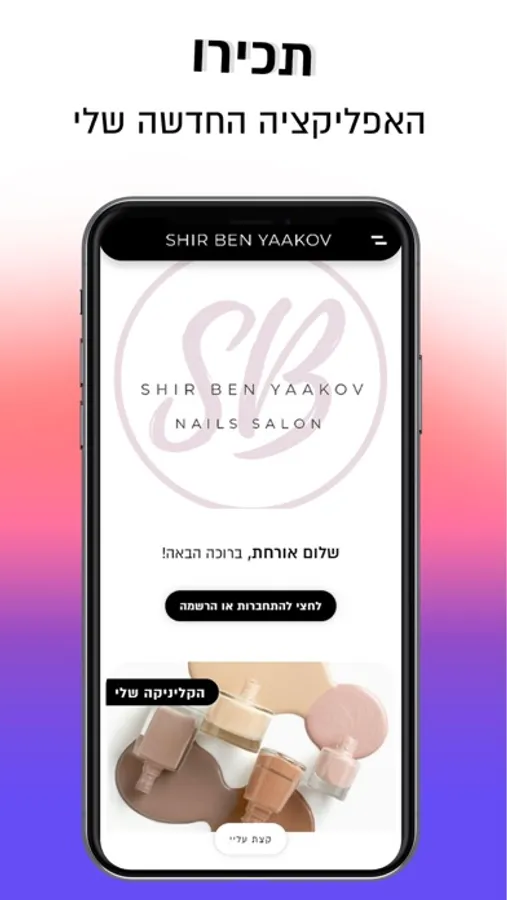 מהיום מזמינים תור בקלות ובזריזות דרך האפליקציה של שיר בן יעקב, בנוסף תוכלו להתעדכן בכל מה שחדש, לשתף את שאר הלקוחות בחווית הטיפול ועוד..