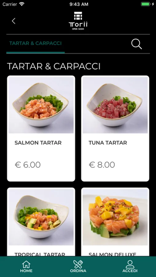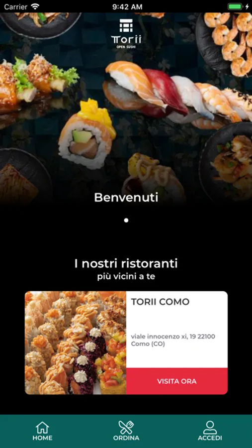 La nostra app gratuita, facilissima da usare, ti permette di ordinare al Torii più vicino a casa tua.