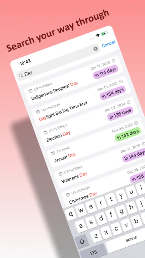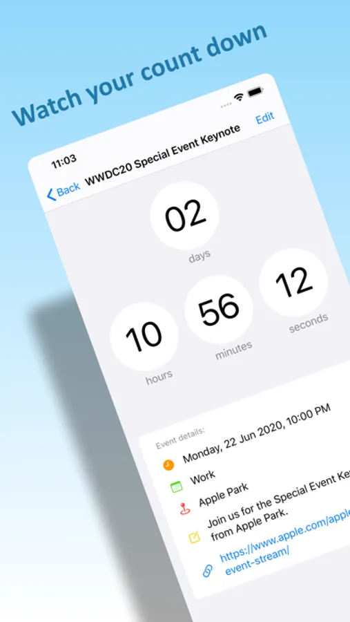 Most other similar apps essentially require you to add events to their app, so that they can list the countdown. We thought, it is redundant to have an event in your Calendar and then add it to another app to view the countdown.
