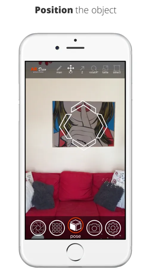 Autonomously, anywhere, anytime, without calling on an intermediary professional or a commercial site offering a pre-established catalog, the user projects a new decoration or a space arrangement.