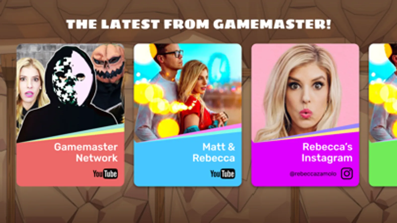 From Rebecca Zamolo and Matt Slays comes The Game Master App! A spectacular new adventure where Rebecca and Matt dash and jump through a tunnel to retrieve top secret collectables. Fans of the Game Master Network can collect gems, puzzle pieces and lie detector mixture that unlocks secret messages.