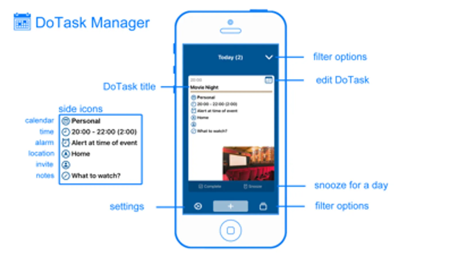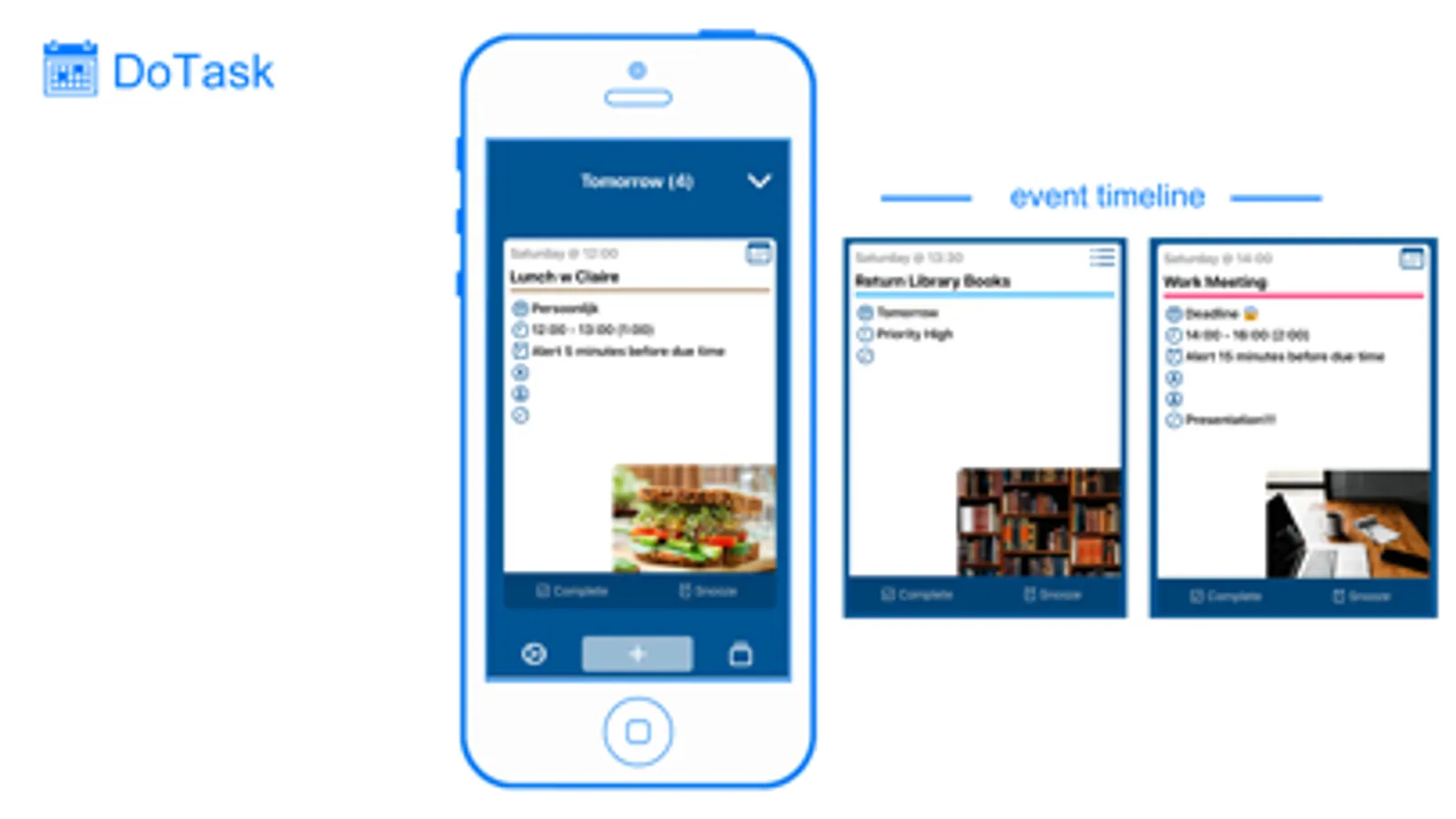 DoTask lets you combine all your Calendar Events and Reminders into one place. Designed for easy scrolling through all the events for the day and lets you focus on what needs to be done. When a reminder is done or an event is over you can mark it as complete or snooze it by postponing it for a day. Visually see a task being completed and get motivated to clear everything for the day.