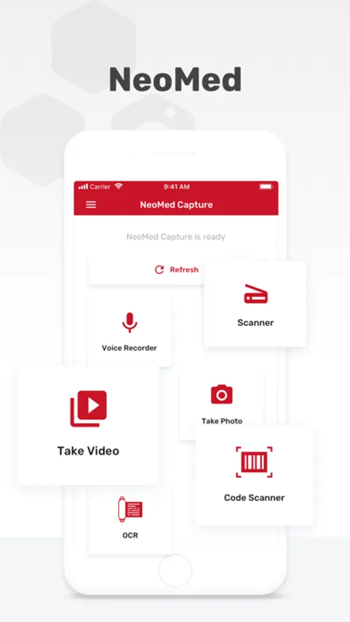 NeoMed Capture allows you to use your device as a camera, scanner, signature pad, audio recorder, bar code scanner, and more with NeoMed 4.