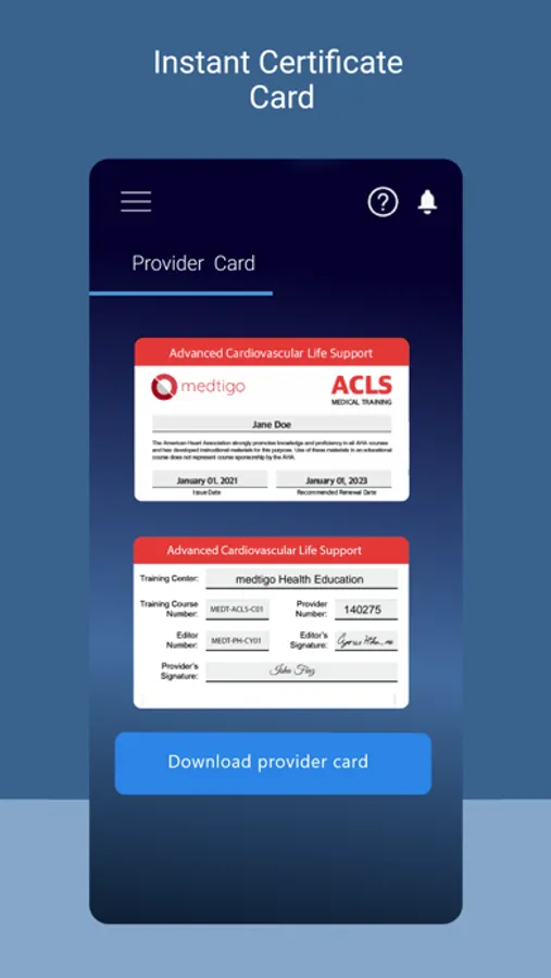 medtigo is a comprehensive and personalized resource for doctors and healthcare professionals worldwide. Our platform offers access to high-quality certificate courses such as ACLS, BLS, NRP, and PALS, an ever growing collection of high-value CME/CE courses that are designed to help you meet State specific requirements, a secure online vault to store and track your regulatory certificates including your State licenses, access to the latest medical news from our professional medical news team, expertly written monographs on thousands of drugs and medical conditions, and innovative medical simulation game play to test your skills. Our platform also offers professional services including assistance with State medical license applications, DEA certificates, and controlled substance certificates. And we offer opportunities for our members to apply for job opportunities and access high-paying locums positions through our associated staffing division.