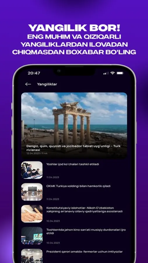 "BIZ Media" - informs our compatriots abroad about the news of life in Uzbekistan, acts as a bridge of communication for Uzbeks around the world, transmits the immortal traditions and eternal values of our people to future generations, presents national masterpieces of cinema and music. is a cultural and entertainment online television and radio channel.