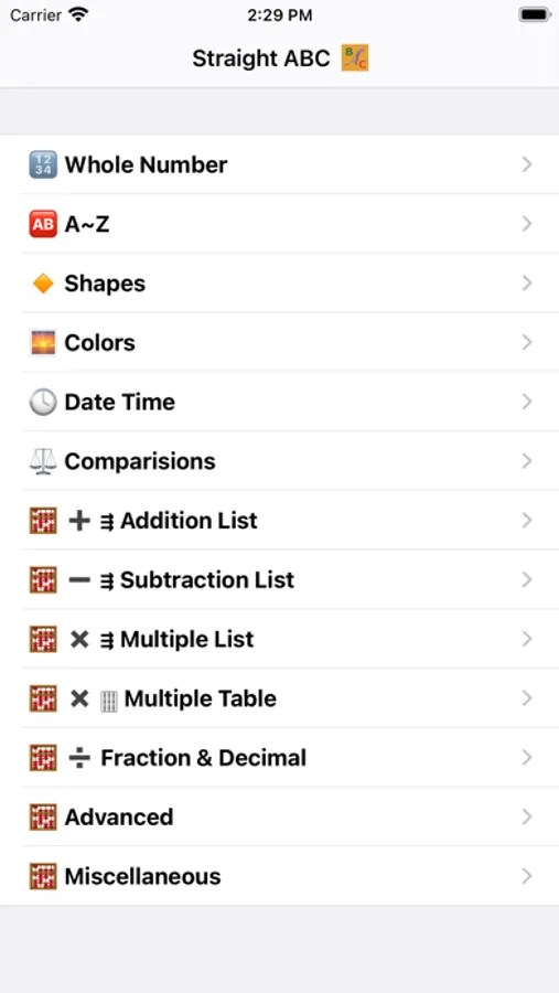 Straight ABC is an application designed to help children master the fundamental knowledge in elementary school. The covered topics are numbers, English letters, colors, shapes, date time, comparisons, and basic math (+ - x / fraction and decimal). This application helps children learn quickly with graphical explanation and effective practice.