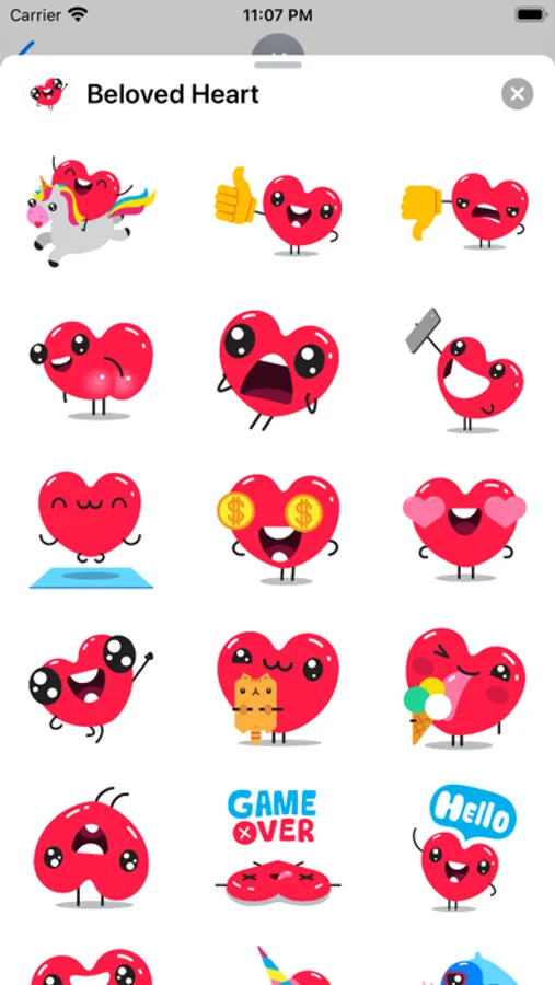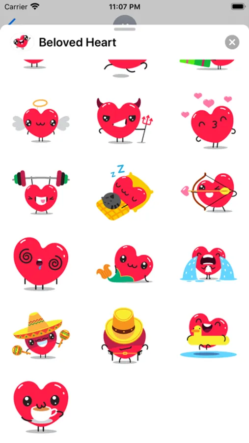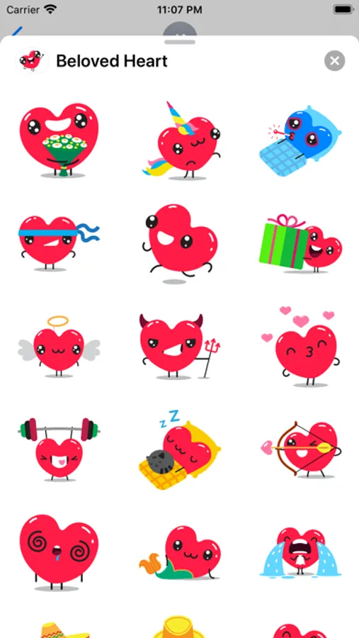 Meet the stickers with a crazy heart that is full of emotions. Emoji in this form will surprise your friends!