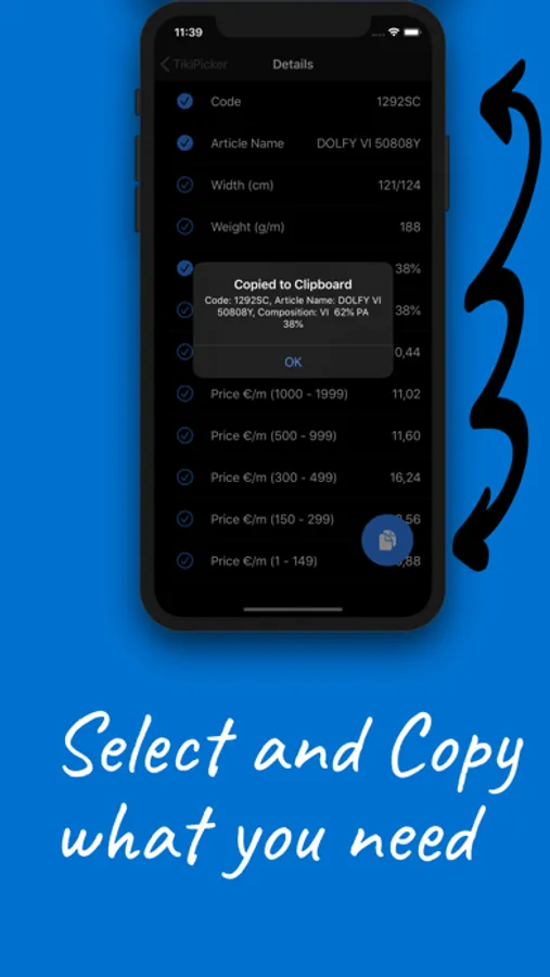 * Tick the info you want to copy to clipboard