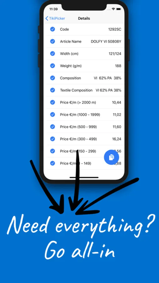 TikiPicker stores the data you need more frequently, like price lists, catalogues and technical data sheet, and allows you to retrieve the information as easily as looking it up on a search engine. You can then include the information as text in the email you are writing, in the message you are sending, in a reminder or a document you want to save with just one click.