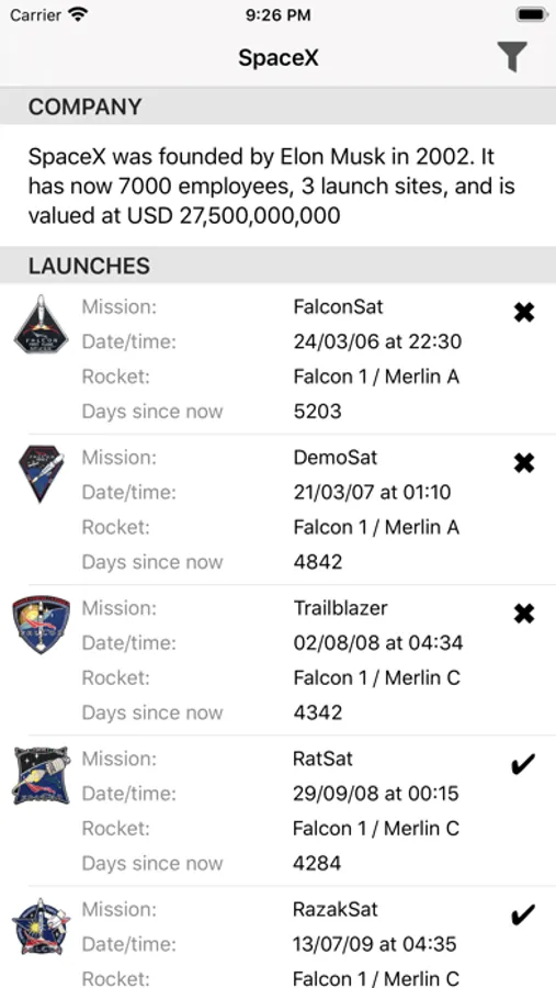 The App provides information on upcoming and past rocket launches by SpaceX. You can filter and sort the launches based on either they succeeded or failed.