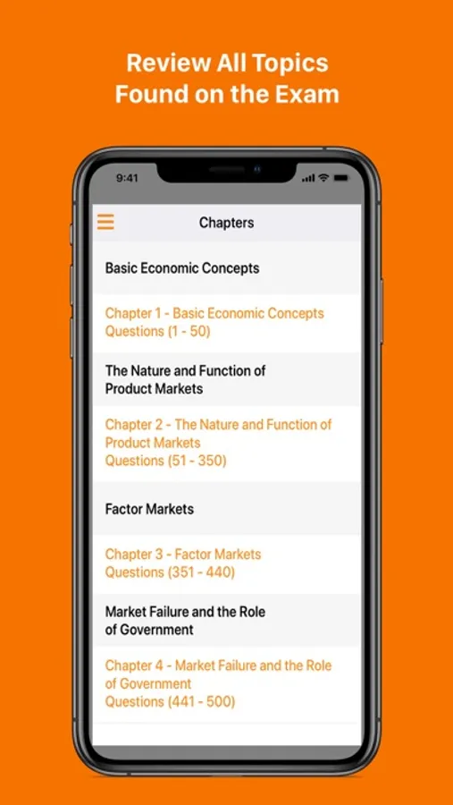 This free application includes all questions in Chapter 1 - Basic Economic Concepts (1-50). The remaining 450 questions are available through an in-app purchase of $15.99.