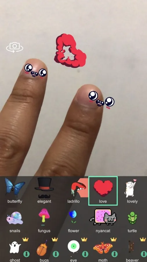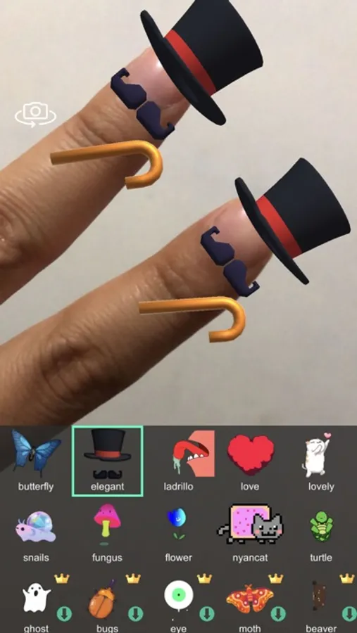 Try our augmented reality effects by showing your fingers (works best with the thumb), have fun, record videos and share it on your social networks. It's free!