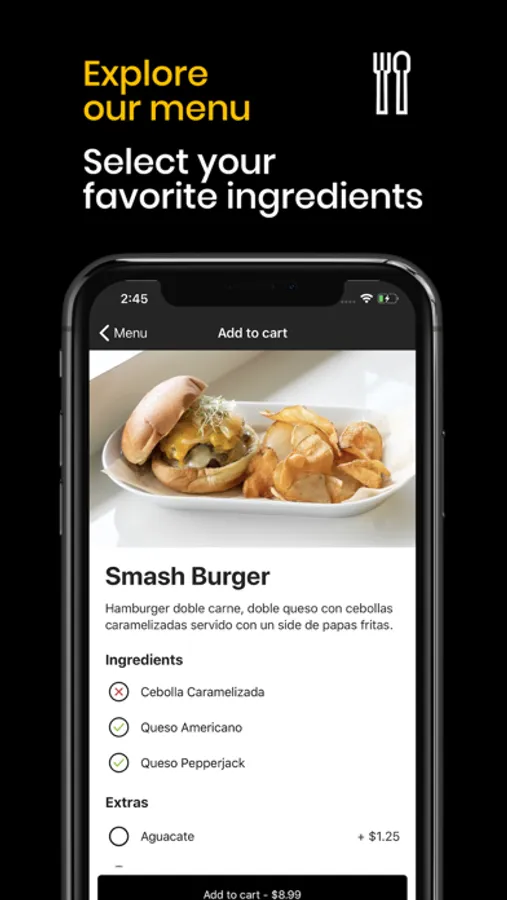• Processing an order within our app is very easy, just tap “Check out”, select a payment method and your order will be automatically processed.