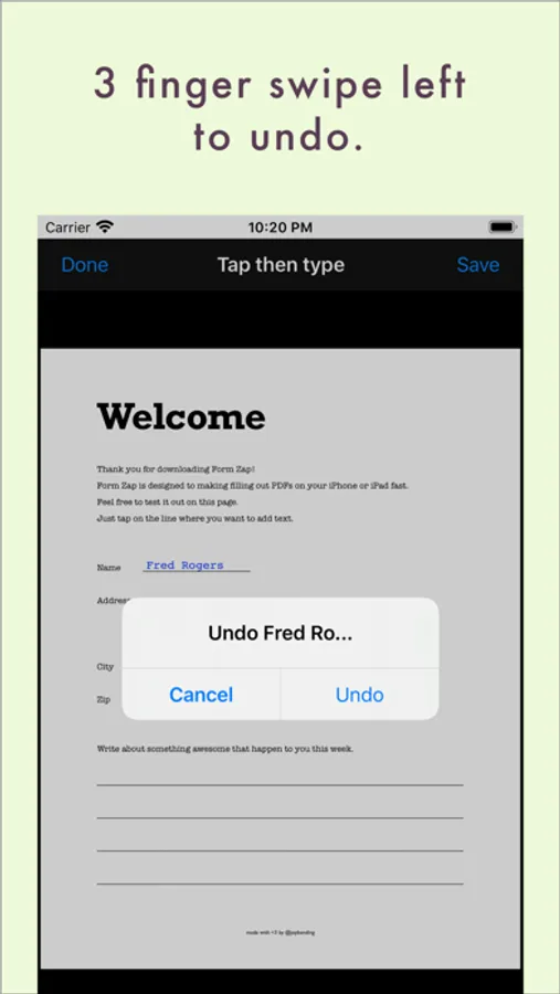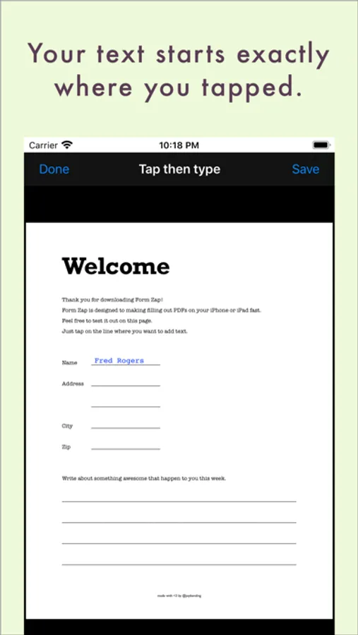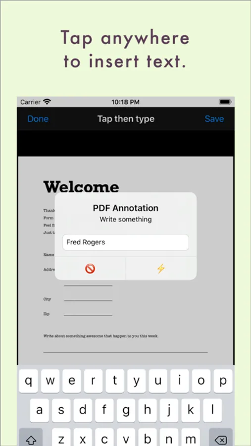 Adding text to the form is as simple as just tap and type. Tip: tap on the line where you want your text to appear.