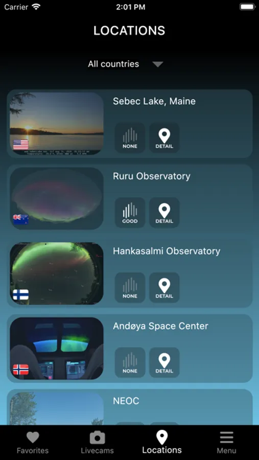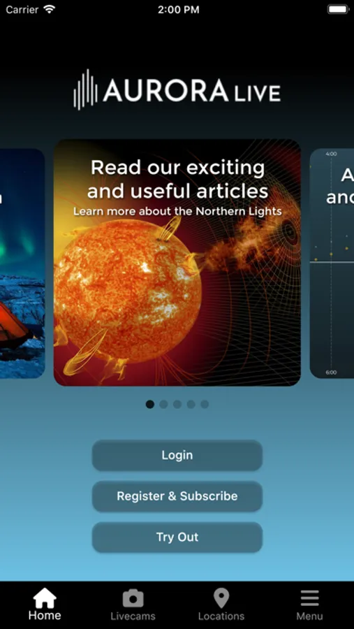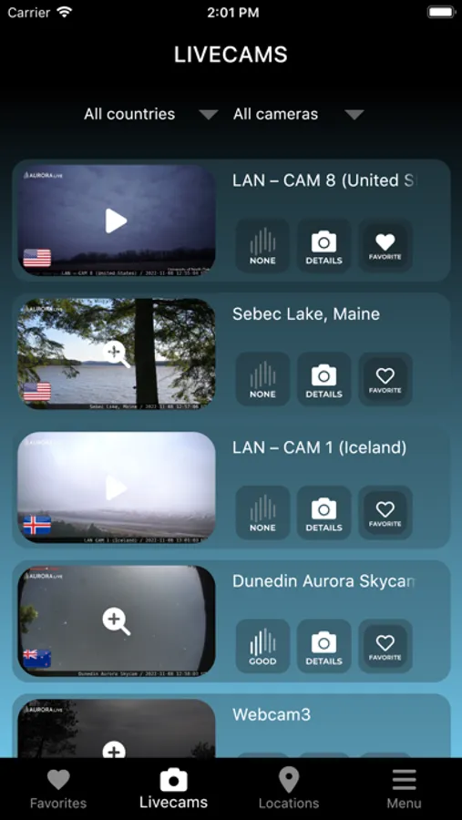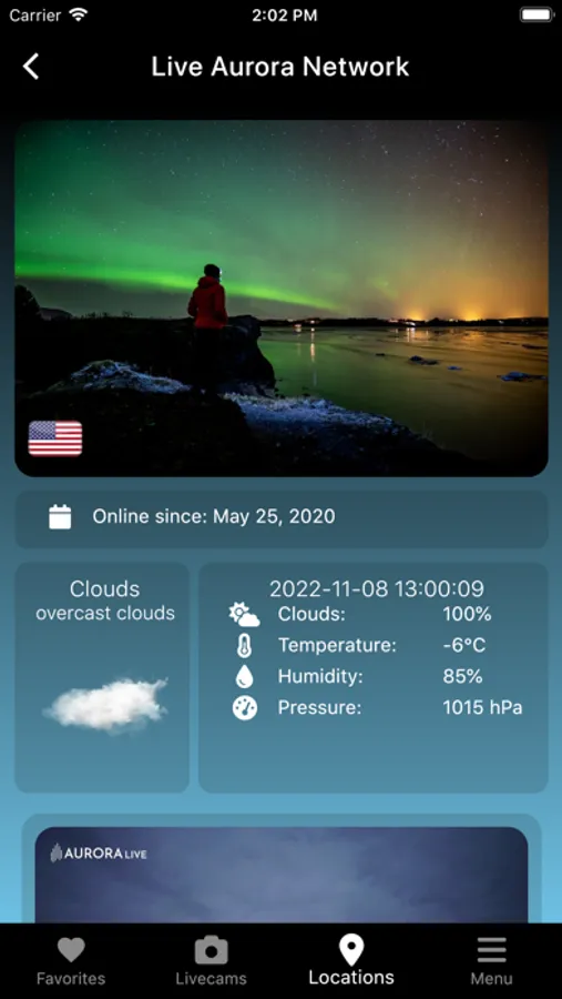 Aurora LIVE is by far the best app to see the Aurora Borealis LIVE on the internet. If you are chasing the aurora this is one of few apps that WILL help you find a good spot for the aurora. You have the chance to enjoy the biggest network of northern lights livestreams, in the highest quality on the internet. You can also check the aurora forecast LIVE 24/7. Subscribers can win a free stay in monthly raffles, get push notifications when the aurora appear and also get the app without ads.