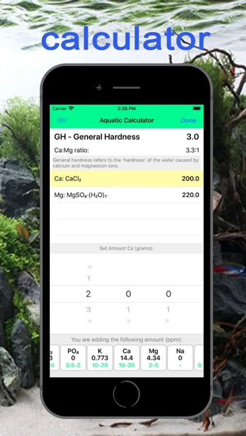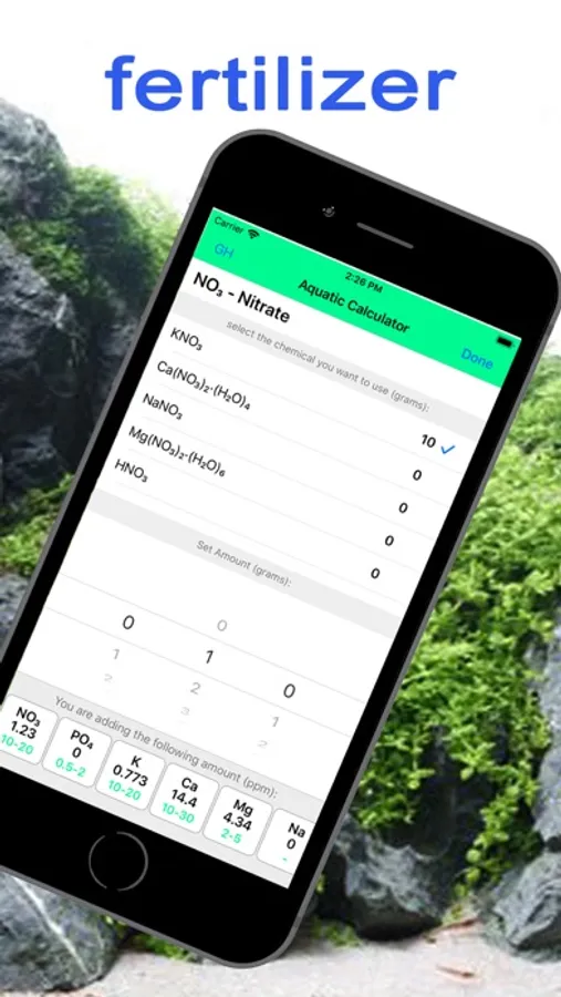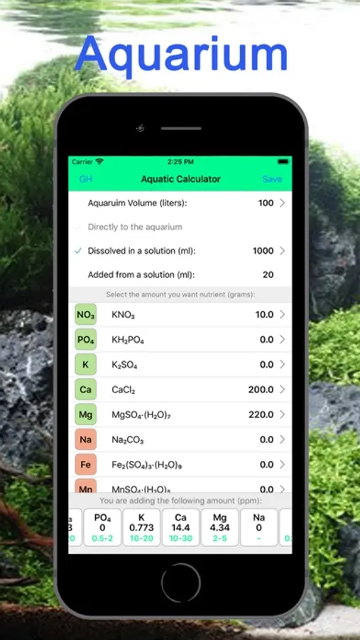 The calculator in the lower field will show how much mg / l (ppm) will be added to the aquarium per week. Compare with recommended values.