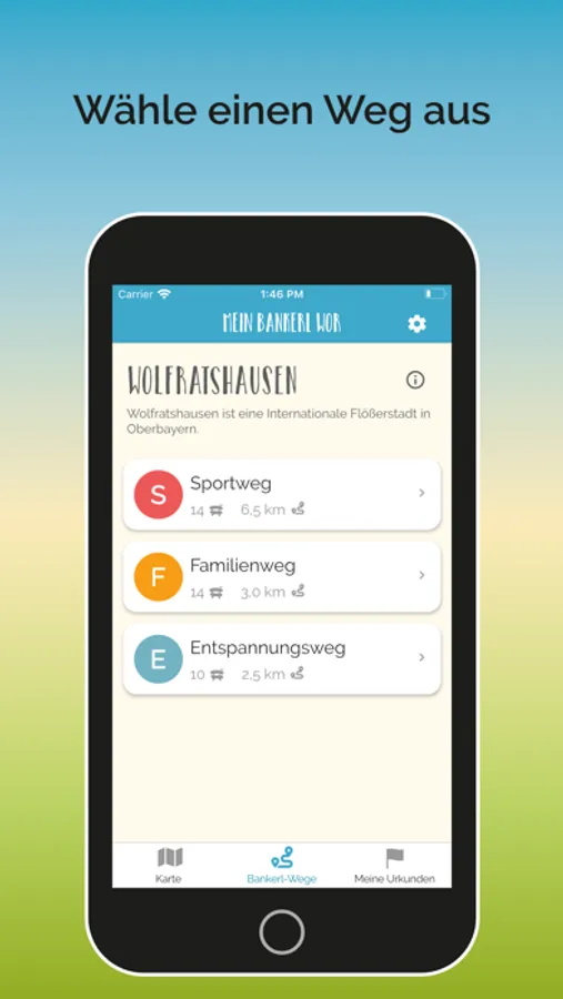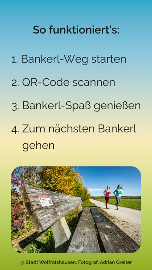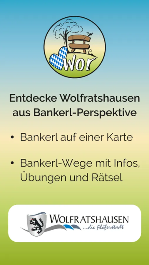 Mit der Mein Bankerl WOR App entdeckst du die bayerische Flößerstadt Wolfratshausen aus Bankerl-Perspektive. Interaktive Bankerl-Wege führen dich von Bankerl zu Bankerl durch die Stadt. Dabei erhältst du an den Bankerln Spielanleitungen, Rätsel und Quizze, Sportübungen und Entspannungseinheiten. Denn in Wolfratshausen sind Bankerl mehr als nur Sitzgelegenheiten.