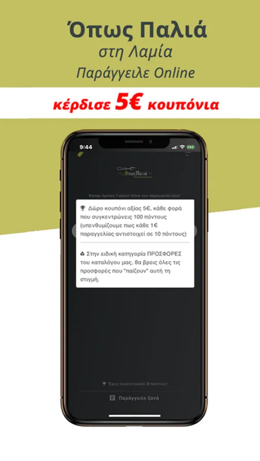 - 10€ κουπόνι κάθε φορά που συμπληρώνεις 1000 πόντους (1€ = 10 πόντοι)