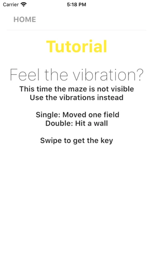 The goal of the game is to find a key in a maze and bring it back. The catch is: the maze is not visible! You will have to rely on the vibration feedback. The challenge is to keep an overview of the maze without getting lost.