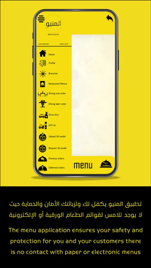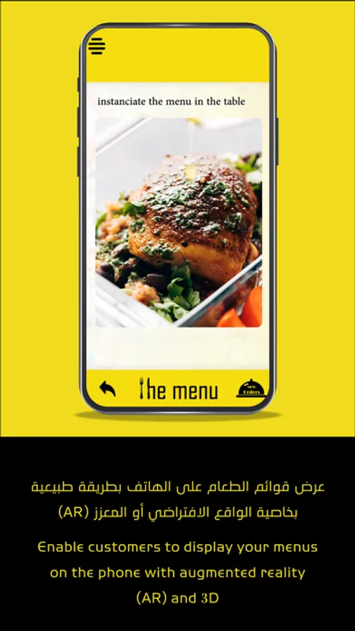 لأصحاب المطاعم والكافيهات تطبیق لعرض قوائم الطعام على الھاتف بخاصیة الواقع الإفتراضي و یكفل لك ولزبائنك الأمان والحمایة
