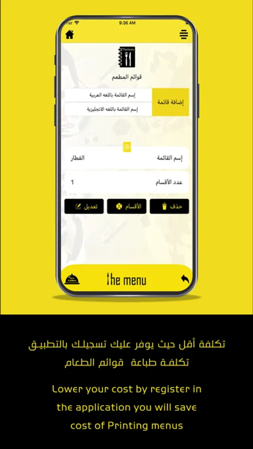 تكلفة أقل حیث یوفر علیك تسجیلك بالتطبیق تكلفة طباعة قوائم الطعام