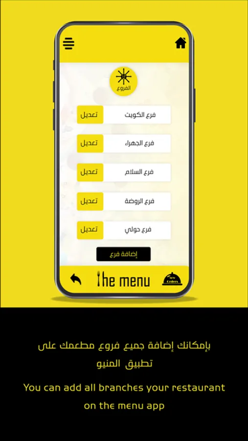 بإمكانك إضافة جمیع فروع مطعمك على تطبیق المنیو