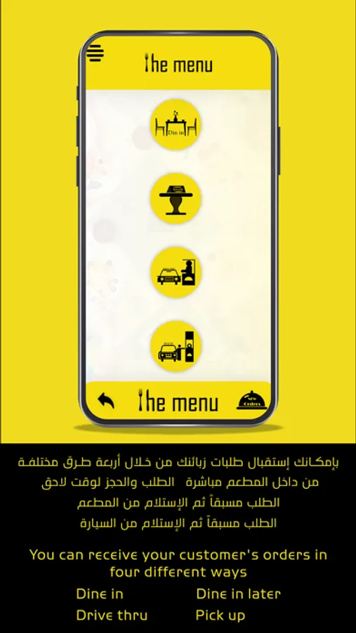 4- الطلب والدفع من أي مكان والإستلام من المطعم.