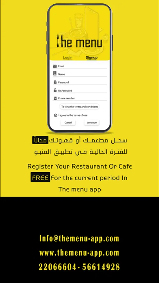 سجل الان مطعمك او قهوتك مجانا مع تطبيق المنيو