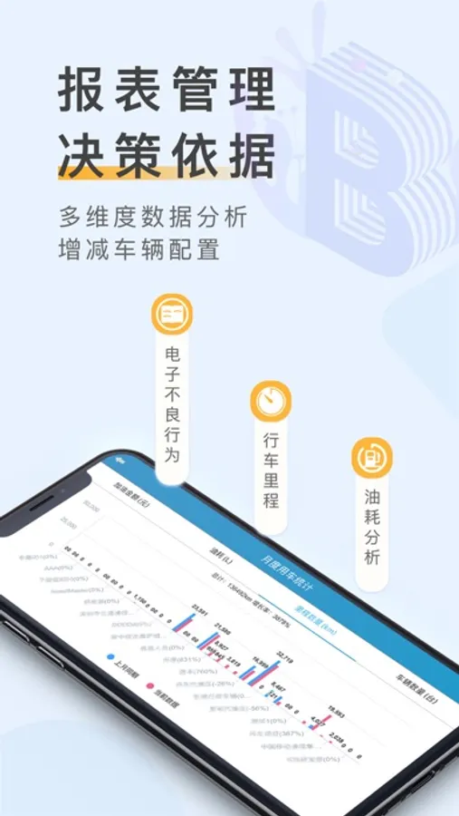 油耗、电子围栏、不良行为等会记录在系统中作为数据支撑,平台会提供多种报表作为公司的决策支撑