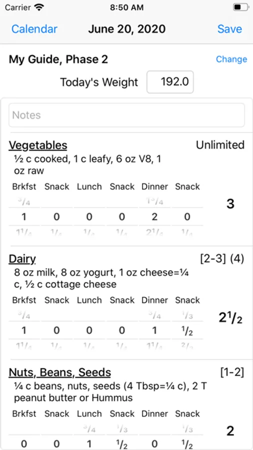 Set up your own diet plan tracking guide and food groups or use Dash Diet guidelines