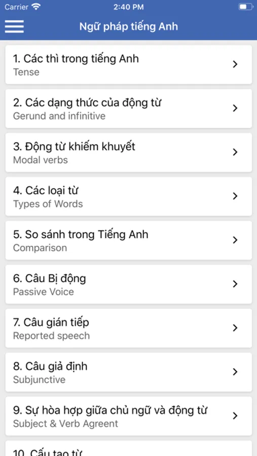 Ngữ pháp tiếng Anh - Ứng dụng giúp bạn tra cứu ngữ pháp tiếng Anh nhanh chóng trên điện thoại.