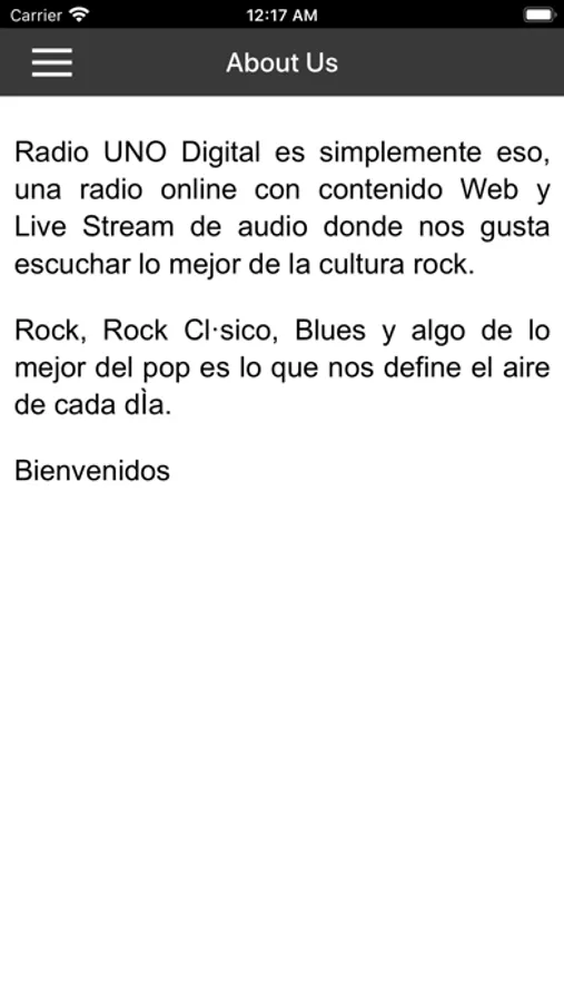 Radio UNO Digital es simplemente eso, una radio online con contenido Web y Live Stream de audio donde nos gusta escuchar lo mejor de la cultura rock. Rock, Rock Clásico, Blues y algo de lo mejor del pop es lo que nos define el aire de cada día. Bienvenidos