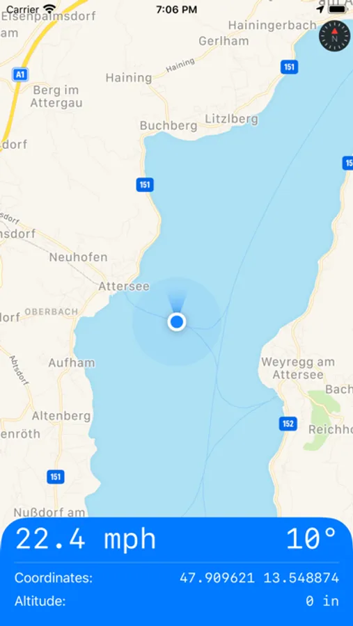 This app allows you to see where you are on a map and gives you detailed information about your current speed, your bearings, your coordinates and your altitude.