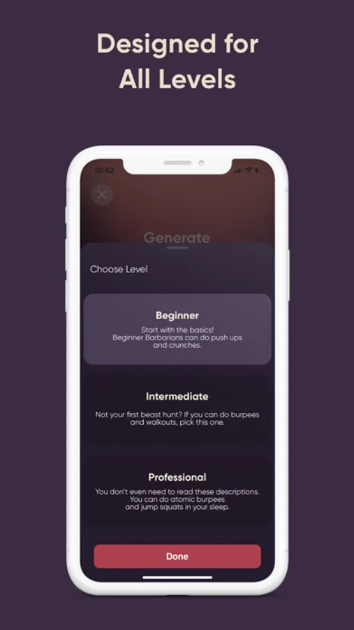 Health experts suggest adults regularly get at least 75 minutes of exercise per week. Barbarian Fit uses an XP bar to track every minute you train and helps you stay on track to hit your training goals each week.