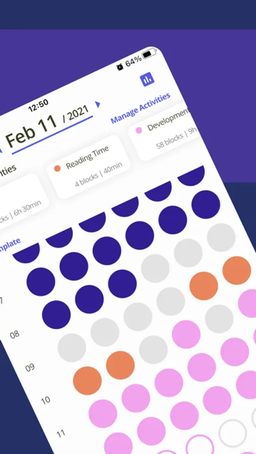 - A blocks-based visualization of every single day: time block your way to your goals and end procrastination!